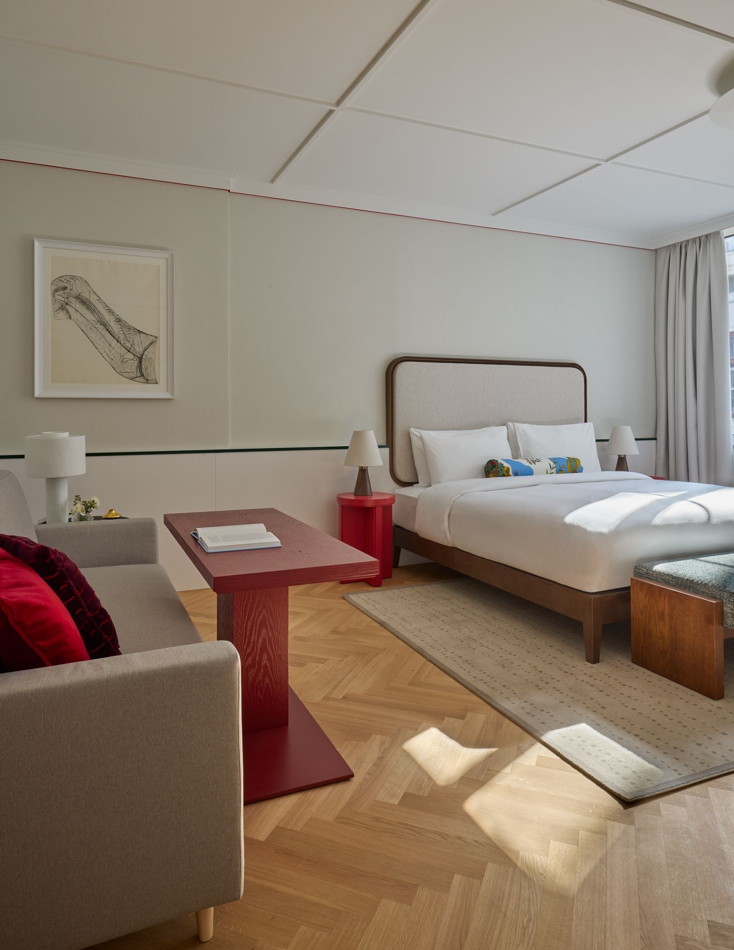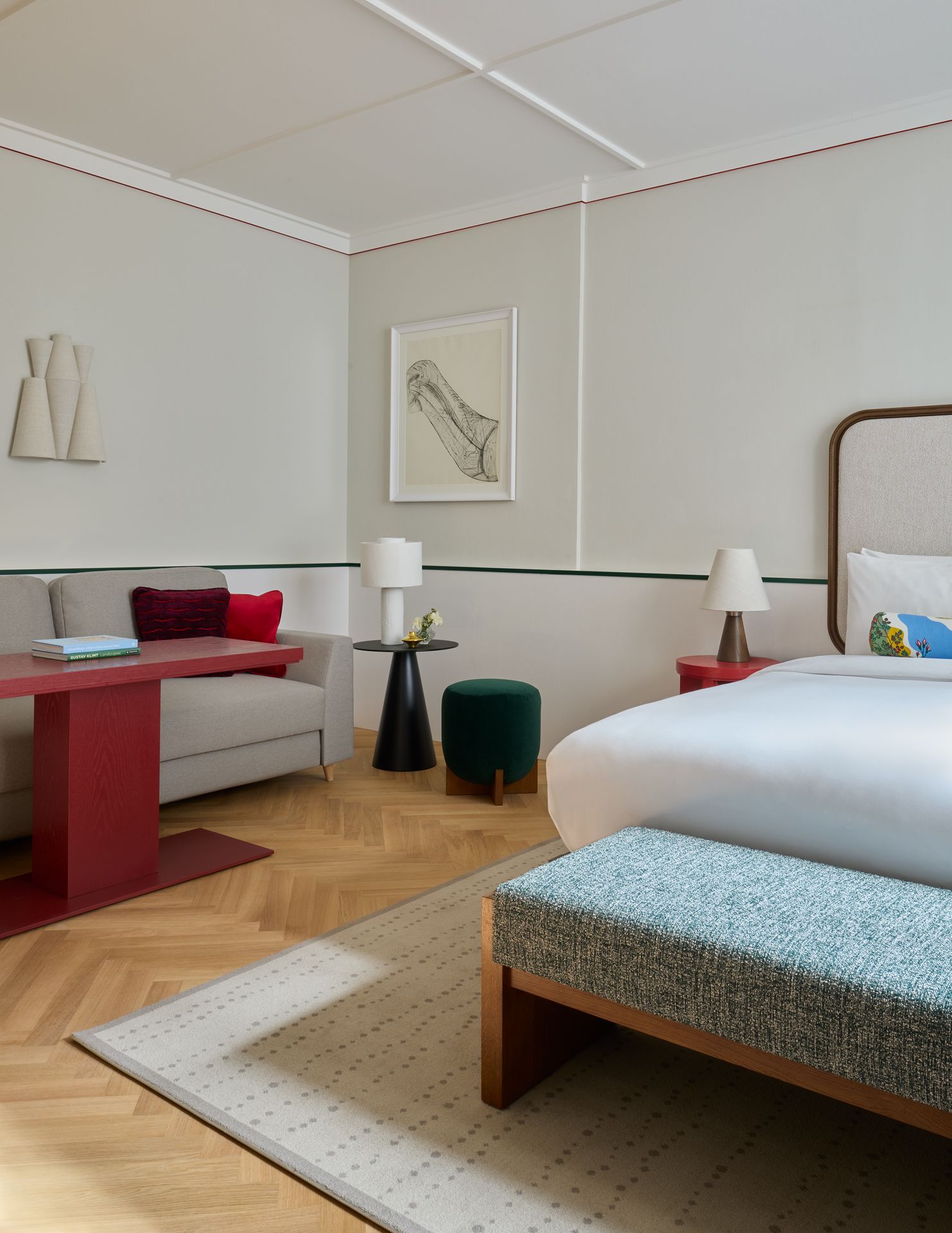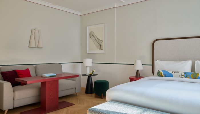Die Spittelberg Suite ist das geräumigste und großzügigste Zimmer des Hotels – perfekt für Gäste, die sich ein wenig mehr Verwöhnung wünschen. Mit Blick auf den Innenhof bietet die Suite ein King-Bett mit Lounge-Bereich, inklusive Schlafsofa. Zusätzlich gibt es eine Regendusche, eine freistehende Badewanne und ein separates WC. Le Labo Pflegeprodukte, eine kostenfreie, gut bestückte Minibar sowie Tee- und Kaffeezubereitungsmöglichkeiten runden den Aufenthalt ab und machen ihn zu einem mühelos eleganten Erlebnis.