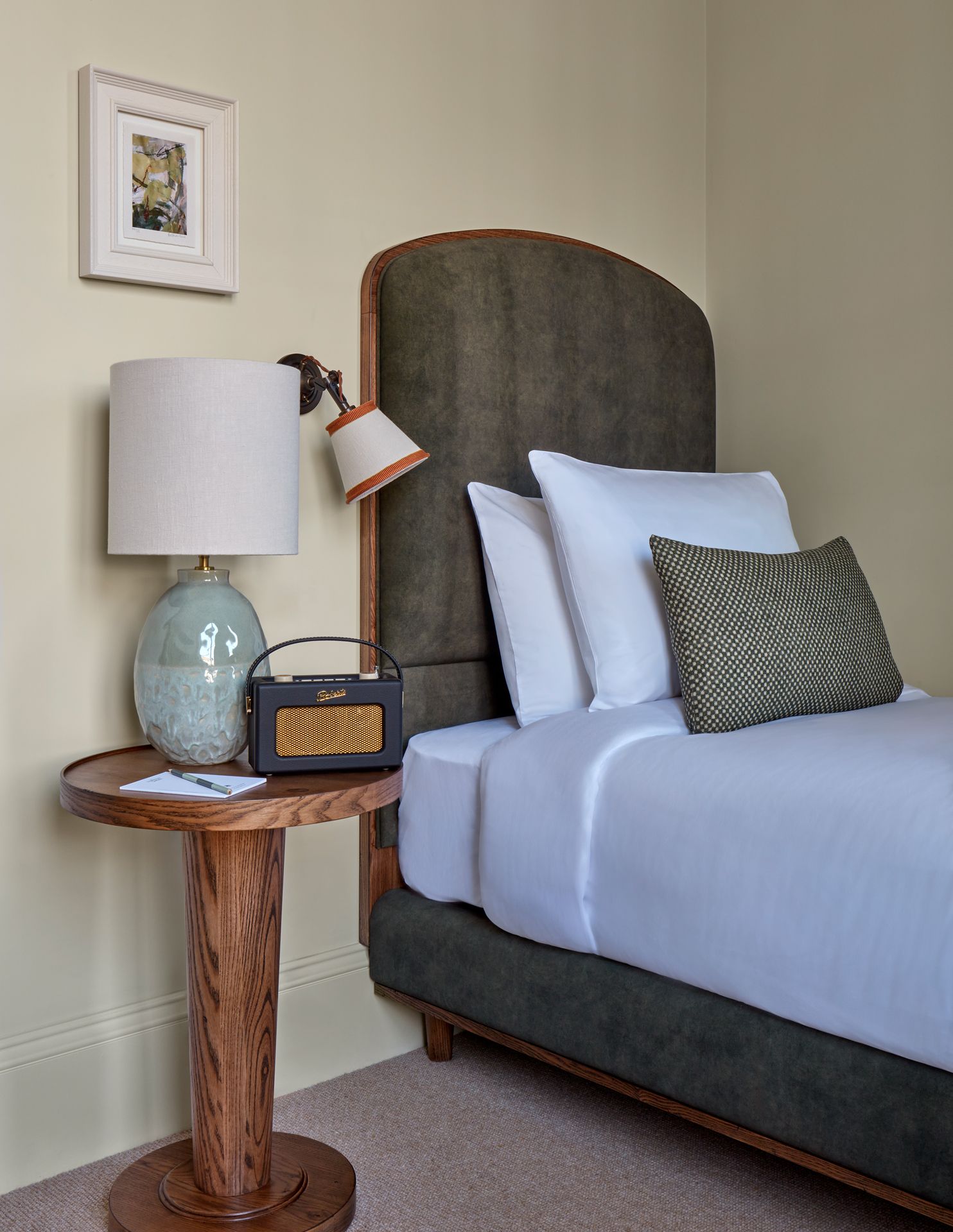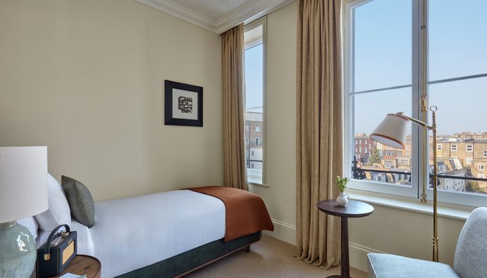 La individual tiene todo lo que los viajeros en solitario necesitan para una estancia relajante en Londres. Los tonos suaves y relajantes aportan tranquilidad, complementados con materiales naturales y una decoración contemporánea y minimalista. Disfruta de una noche de sueño reparador en tu cama tapizada a medida, antes de empezar el día con un té o un café recién hechos. Prepárate para el día bajo la ducha efecto lluvia con nuestros artículos de aseo Le Labo, o simplemente relájate con un buen libro en el rincón de lectura.