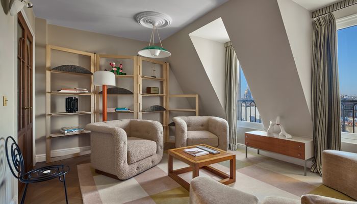 Conçue en partenariat avec le célèbre conseiller en art et conservateur Gilbert Kann, la Suite du Collectionneur peut être réservée en tant que suite individuelle ou combinée avec la Chambre du Collectionneur pour créer un appartement offrant une expérience encore plus exceptionnelle.