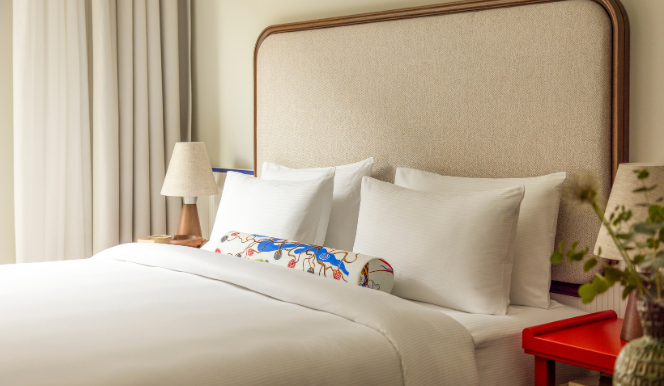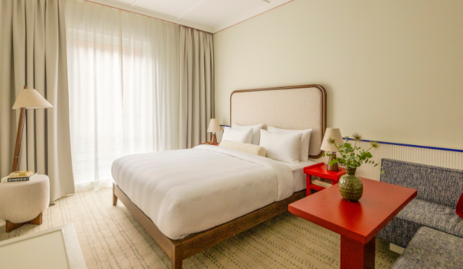 Set within the cobbled streets of Spittelberg, our 132 guestrooms and suites blend comfort, colour and creativity. Each space reflects the quarter’s artistic spirit, pairing warm neutrals with bold accents and natural textures for a relaxed, modern feel. Expect plush beds, rainfall showers, Le Labo toiletries and a cosy reading corner in every room, all part of our Brilliantly Considered standard.