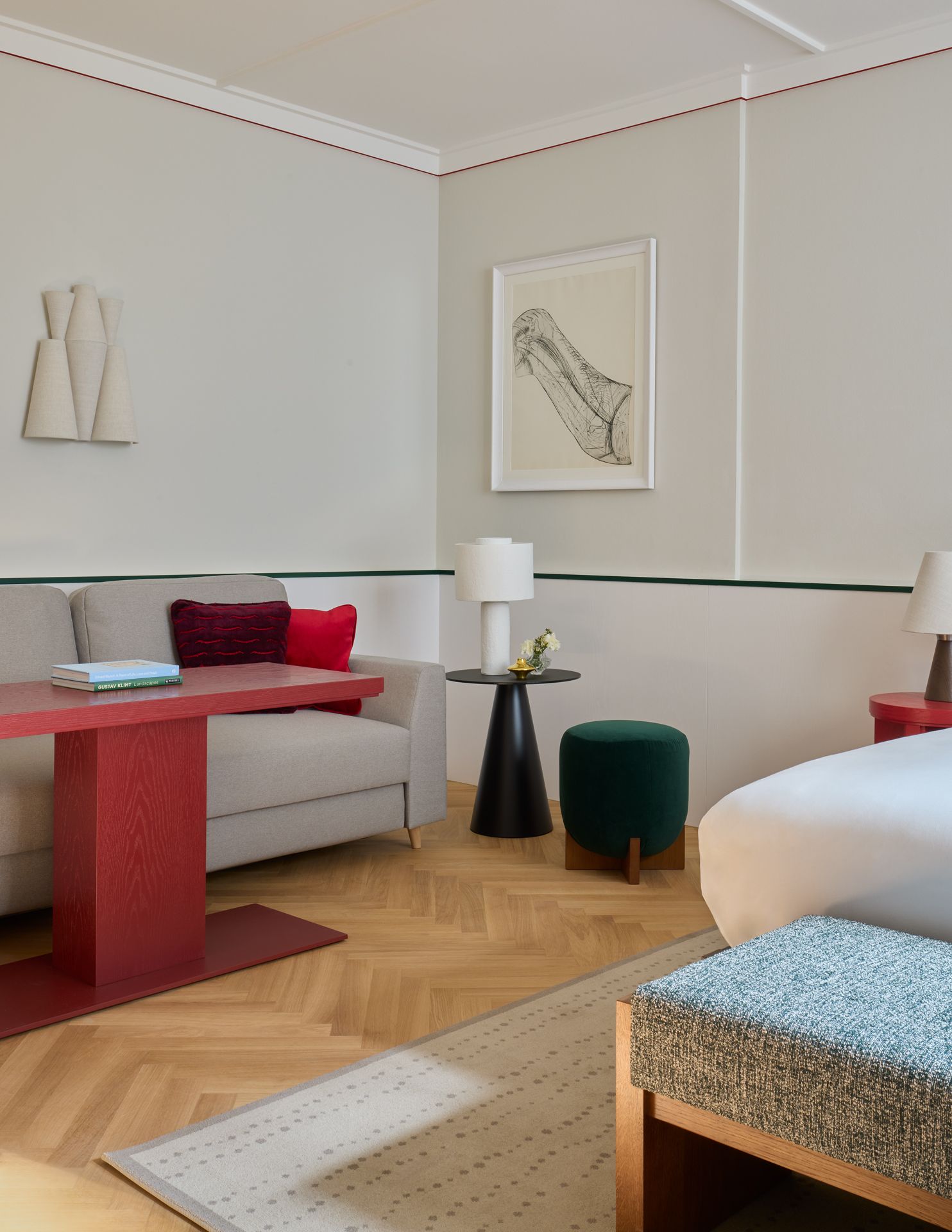 The Deluxe Studio rooms at Spittelberg are spacious, stylish and full of thoughtful details. Overlooking Kirchberggasse or the courtyard, our Deluxe Studios are designed for flexibility and comfort, each featuring a king bed as well as a sofa bed that sleeps two, ideal for families or friends travelling together. Enjoy a rainfall shower, Le Labo toiletries, a fully stocked minibar and tea and coffee-making facilities.